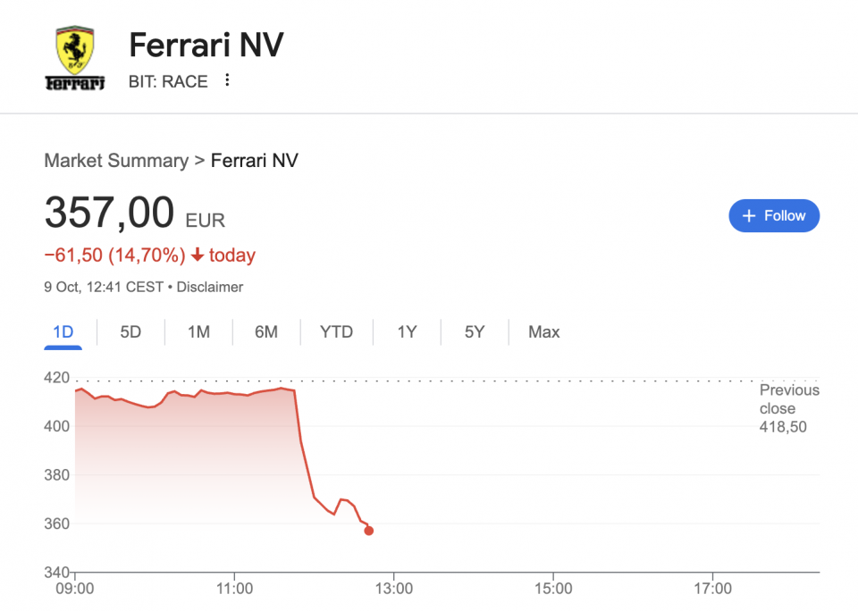 Ferrari's share price takes a hit as it walks back EV volume targets